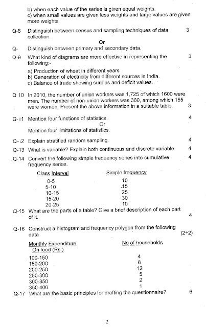 Class XII Economics GYAN BHARTI SCHOOL HALF YEARLY Question Paper (2015 – 2016)